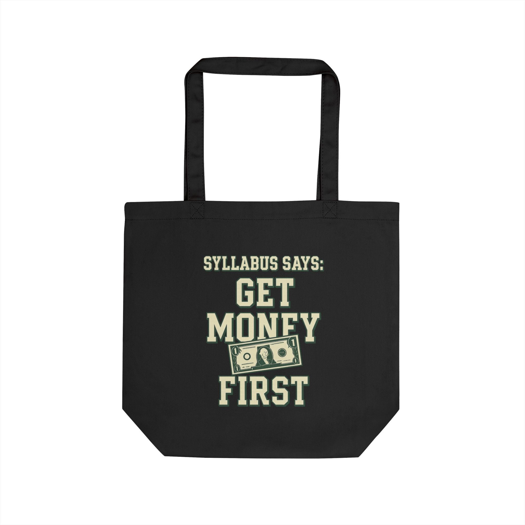 Eco-Friendly Tote Bag: "Syllabus Says: Get Rich First" - Perfect for Students, Shopping, Beach Trips, Gifts, and Everyday Use!