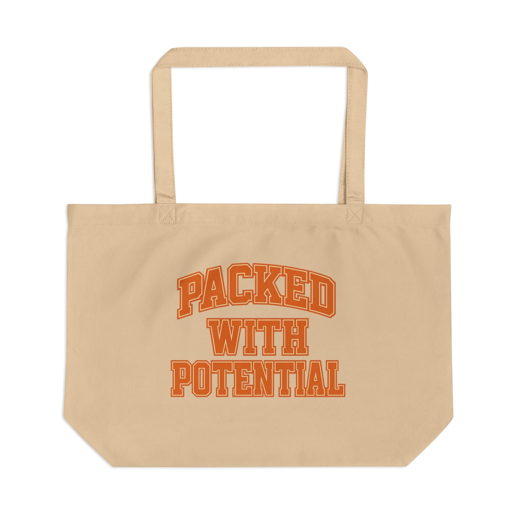 Large Eco Tote - Packed with Potential, Reusable Shopping Bag, Eco-Friendly Tote, Beach Bag, Market Tote, Gift for Her